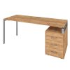 Этот стол мы сделали с вместительной тумбой с тремя ящиками. Её можно разместить, как удобно – с правой или левой стороны