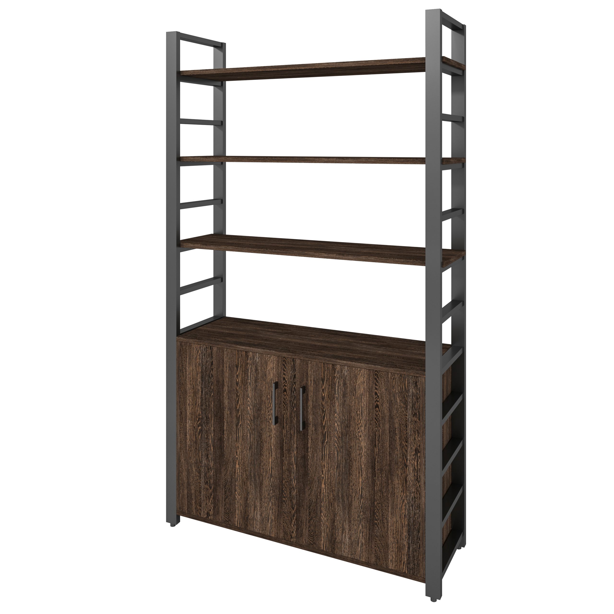 Регулируемые ножки — для этого изделия подойдет любая поверхность, ведь современный стиль не предполагает идеально ровных поверхностей пола. Устойчивая конструкция — металлокаркас, покрытый износостойкой краской, позволит разместить его как отдельно стоящий мебельный элемент, и «возложить» на него большую ответственность в виде солидной нагрузки.